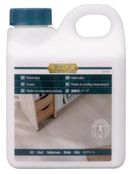WOCAマスターオイルホワイトで施工後、汚れたときは、WOCAナチュラルソープホワイト汚れを落としてください。そのままでも簡単な無垢の木の保護にも使えます。